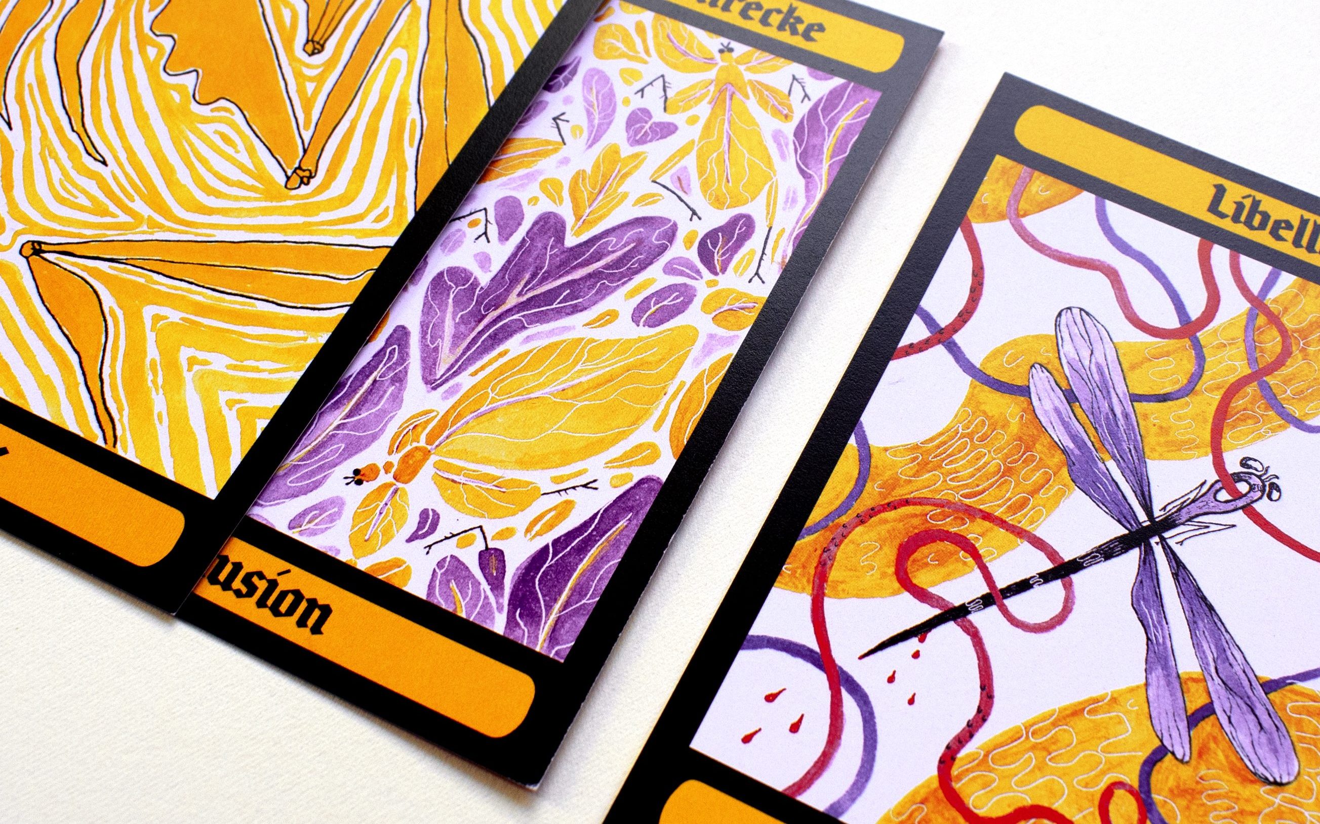 Beim Insekten Orakel stehen uns 26 Insekten mit Rat und Tat zur Seite. Jedes dieser Tiere hat eine eigene Bedeutung und Hintergrundgeschichte zu erzählen, die im passenden Deutungsheft nachgelesen werden können. Dort erfahren wir zum Beispiel, warum die Hummel für Magie oder die Laus für Privileg steht.